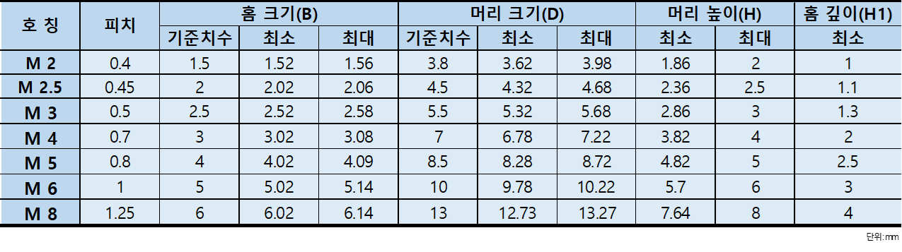 ∴SP/W M 3~ M 8제작 가능